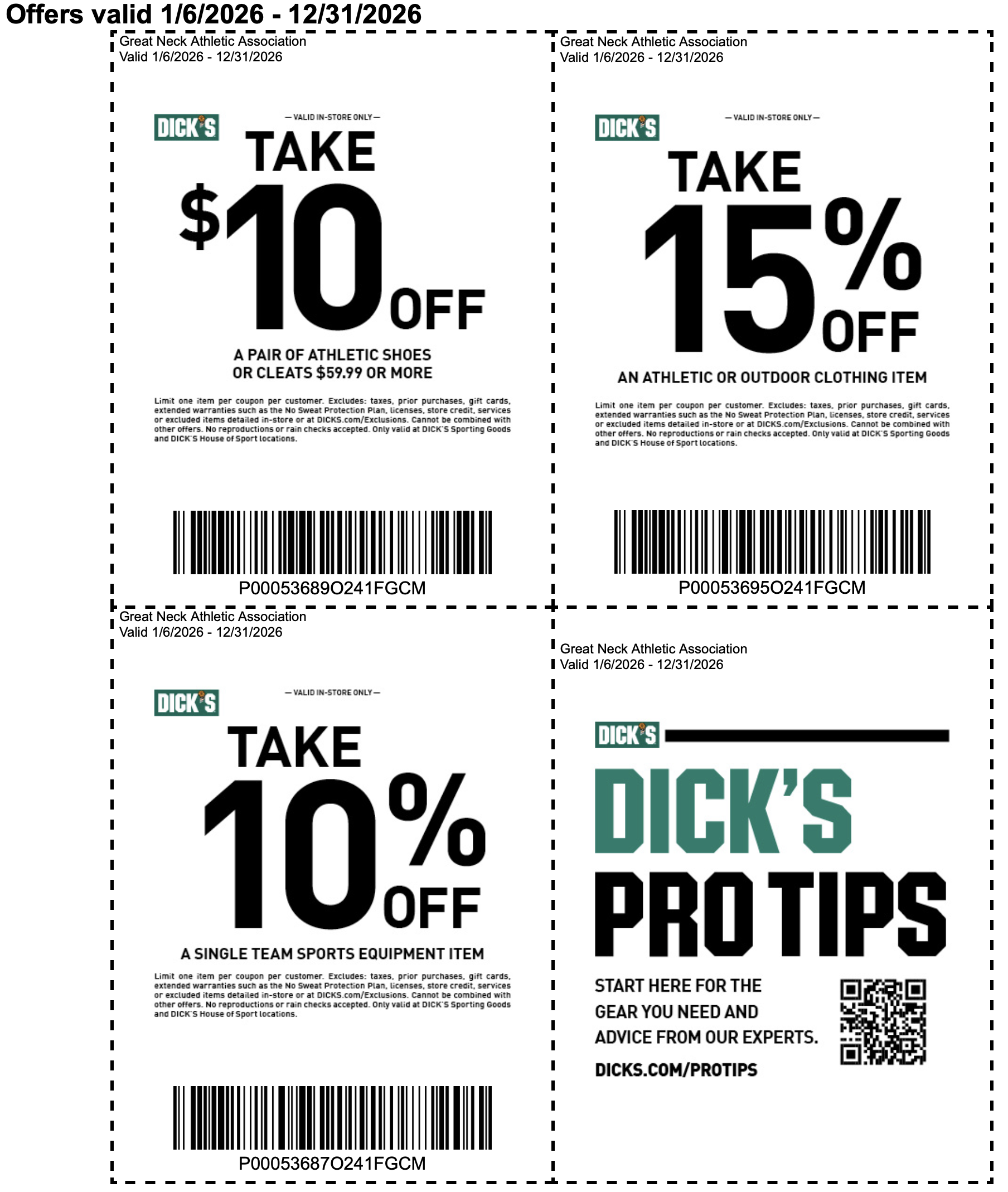 CLICK HERE FOR GREAT NECK ATHLETIC ASSOCIATION IN-STORE COUPON OFFER